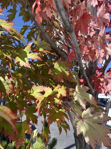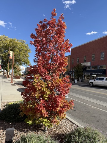 The colors of autumn leaves are especially beautiful in downtown Farmington, New Mexico these days. Recently I took a photograph of a young white oak with gorgeous orange foliage. It was one of several different types of trees planted in the sidewalk and nurtured by city of Farmington employees.